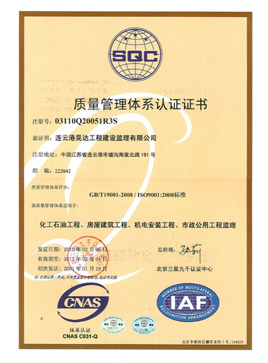 公司已通过ISO9001标准质量体系认证,ISO14001标准环境管理体系认证、OHSAS18001标准职业健康安全管理体系认证及中石油和中石化环境、职业健康安全管理体系评审,并于2014年通过中国石化集团建设诚信体系库考核,获得中石化工程建设诚信体系考核合格证书。在工程建设和项目咨询这个新的领域里,遵循“面向全国、走向世界”的经营方针,以其雄厚的技术力量,精良的设备,一流的信誉,竭诚为国内外客户提供满意的服务,为发展中国特色的建设监理事业而努力。
