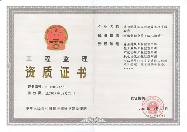公司具有化工石油工程、房屋建筑工程、市政公用工程、机电安装工程四项甲级监理资质及人防工程监理资质,被江苏省列为首批项目管理试点企业。可承接房屋建筑工程、化工石油工程、机电安装工程、市政公用工程一、二、三等工程的建设监理和相应类别建设工程的项目管理、技术咨询业务。